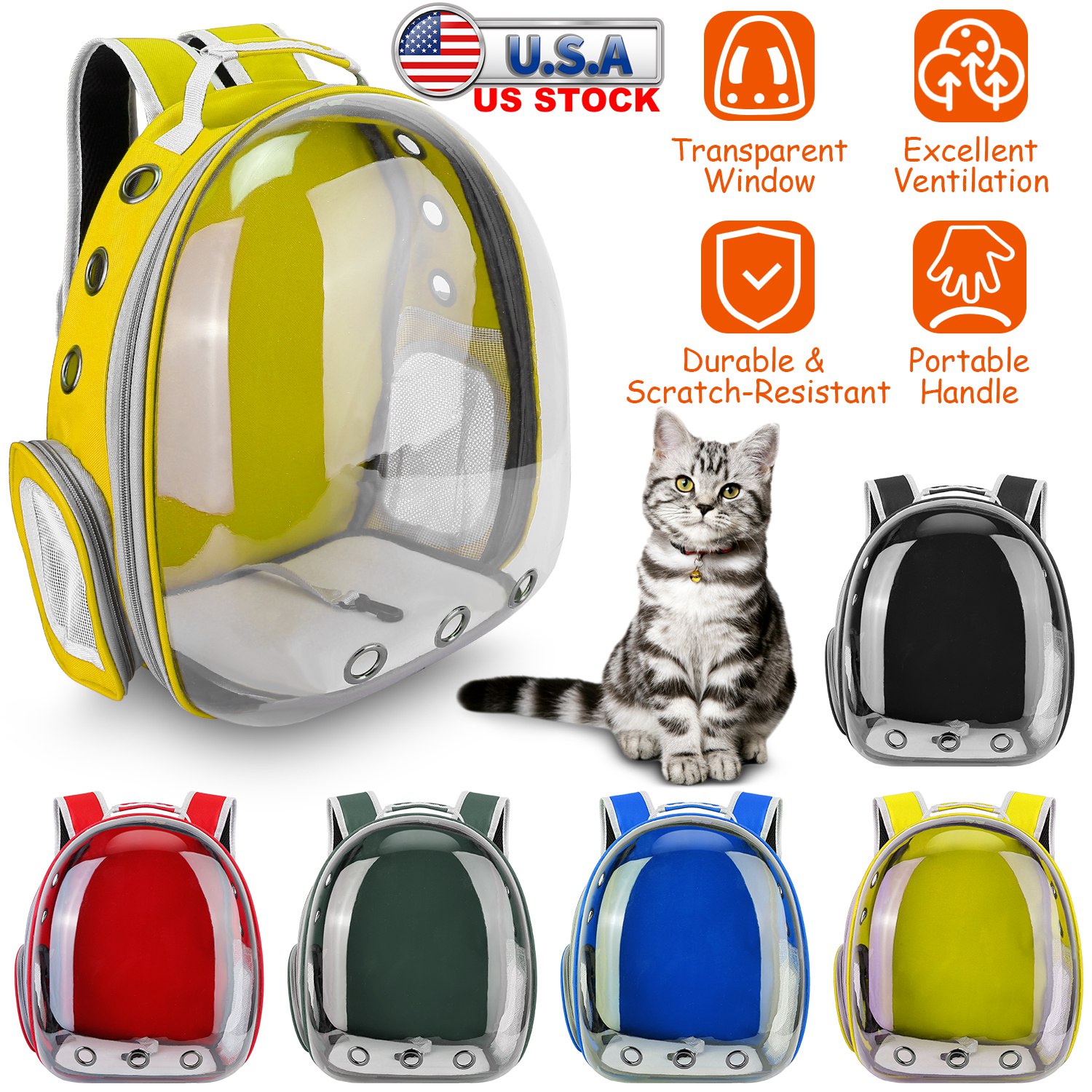 Do you want to have a happy travel with your pets? Our transparent capsule backpack is a perfect selection for you! A big clear window allows them to see everything around to have more fun. 9 ventilation holes around the bag and 2-side mesh provide maximum breathability to your pets. You can carry the pet carrier with a portable handle easily and adjust the shoulder straps to the most suitable length for best status.
